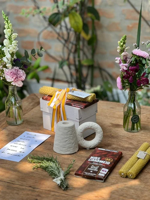 IMPORTANTE: Nossas cestas são entregues sem embalagem externa, como celofane ou sacola extra. Isso faz parte da nossa identidade visual e reflete o cuidado genuíno que temos com a sustentabilidade. Trabalhamos com materiais naturais – madeira, palha, tecido, vime – escolhidos para serem reaproveitados e valorizarem cada detalhe da experiência.