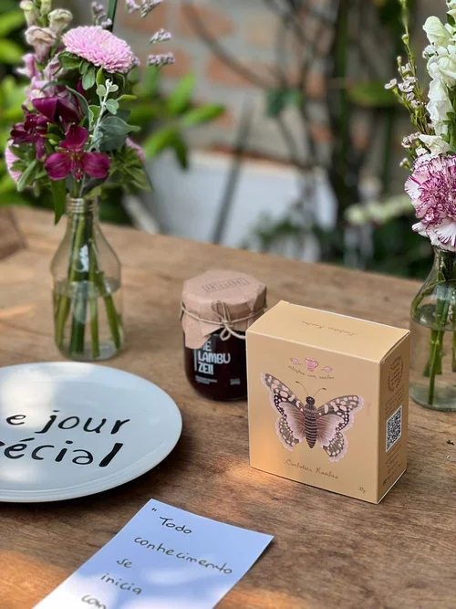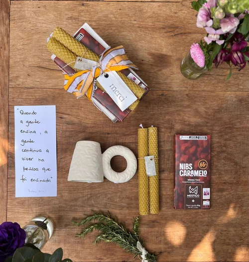 - Chá de Cacau da Mestiço Chocolates - casca de amêndoa do cacau torrada para preparo de infusão. Produzido pela Mestiço Chocolates, terceira geração de produtores de cacau do Sul da Bahia. São o fruto contemporâneo, respeitando as tradições, trazendo a sustentabilidade no trabalho, mantendo a floresta em meio ao cacau e oferecendo uma boa estrutura de comunidade aos seus colaboradores. Oferecem a verdade do cacau, respeitando cada variedade, cada sensorial que sua origem fornece. Cuidam de cada etapa da fabricação, selecionando as amêndoas, torrando de acordo com o cacau que colhem, separando os nibs com o máximo de pureza, refinando até o mais cremoso resultado, até a moldagem da mais brilhante barra. Cada lote e variedade do cacau é tratado de forma exclusiva, por isso cada barra será sempre uma nova experiência. 150g;